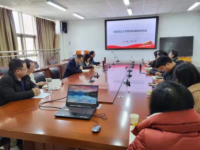 为成功申报马克思主义理论一级学科硕士点,11月12日,在南校区善思楼(南)7楼会议室,学院召开学科建设启动会。院长杨成兰和无教学任务教师参会,会议由学院党委书记、党史党建研究中心主任黄鑫权主持。