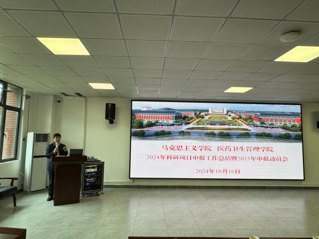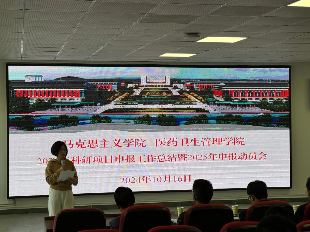 10月16日,马克思主义学院、医药卫生管理学院在善思楼332学术报告厅联合召开了2024年科研项目申报工作总结暨2025年申报动员会。学校副校长沈祥春教授出席并作总结讲话,科技处处长李一欣教授作了工作安排,马克思主义学院和医药卫生管理学院全体教师参加此次会议。会议由马克思主义学院副院长禹辉映主持。