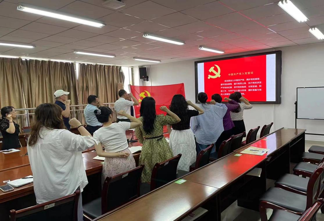 活动在《没有共产党就没有新中国》歌声中拉开帷幕,大家在红色的旋律中重温了党的百年风华,凝聚了力量,坚定了对党的忠诚。随后,王琴带领全体党员重温了入党誓词,引领大家时刻牢记党员身份,时刻铭记初心,自觉遵守党的章程,终身践行入党誓词。