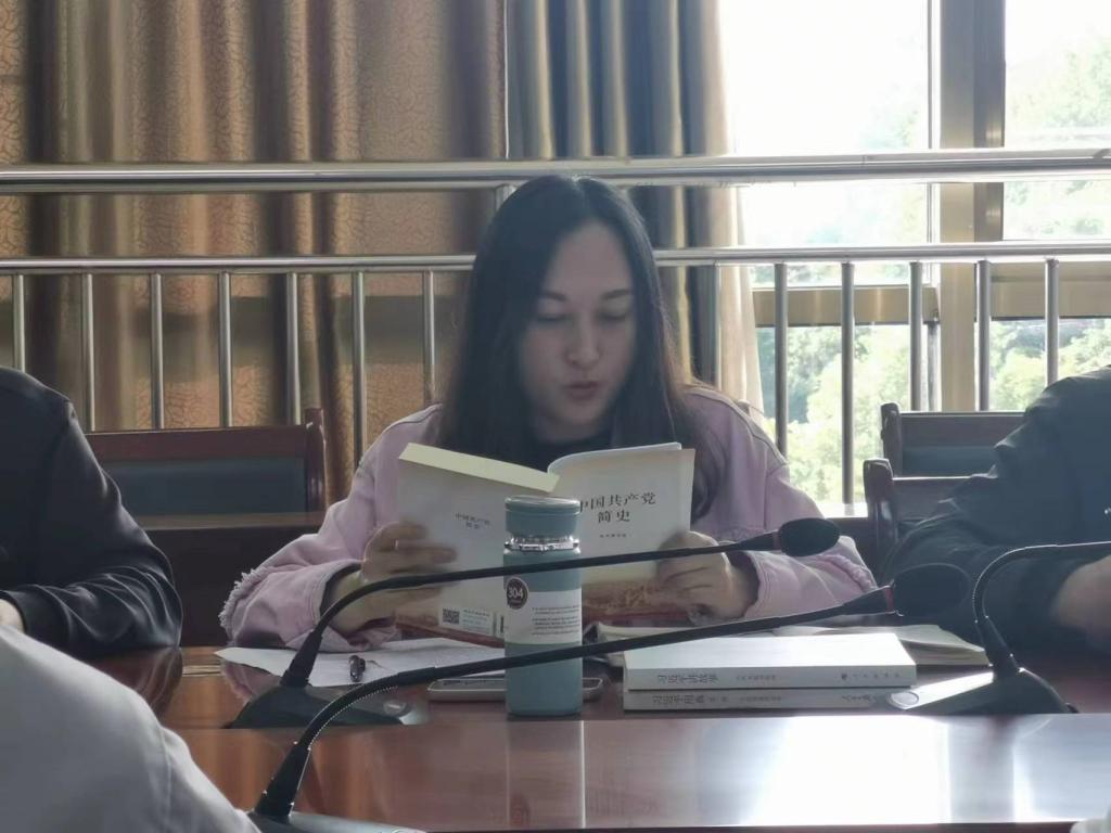 杜美瑾领学《中国共产党简史》第一章第二节“五四运动和马克思主义在中国的传播”。她要求,无论是作为思政课教师党员,发展对象还是入党积极分子,都有必要深刻回顾学习党的历史并从中汲取前行的智慧和力量,一心一意听党话,坚定不移跟党走。