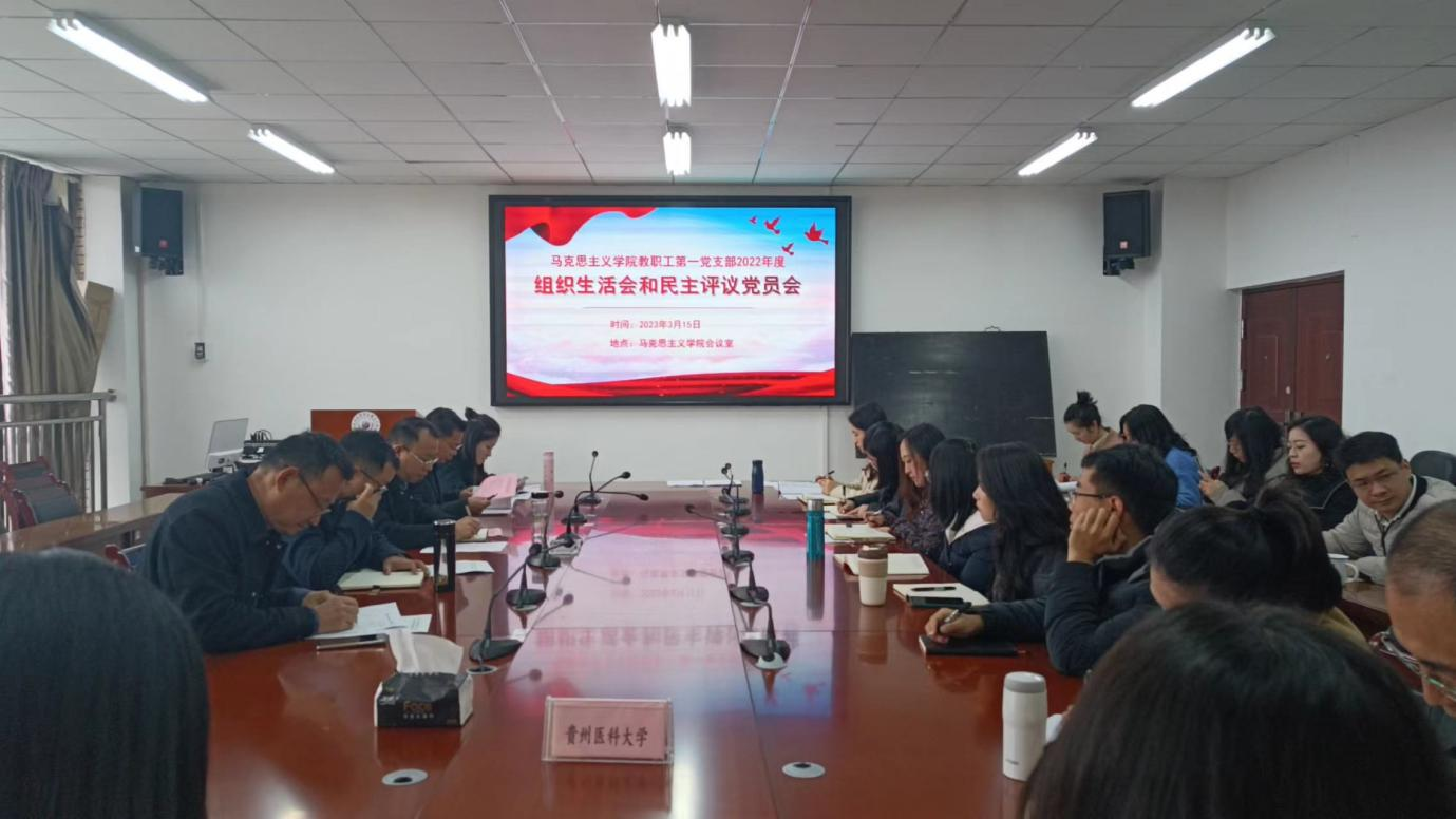 3月15日,马克思主义学院教职工第一党支部在学院会议室召开2022年度组织生活会并开展民主评议党员,会议由党支部书记王琴主持,学院院长杜凯到会指导,全体党员参加。