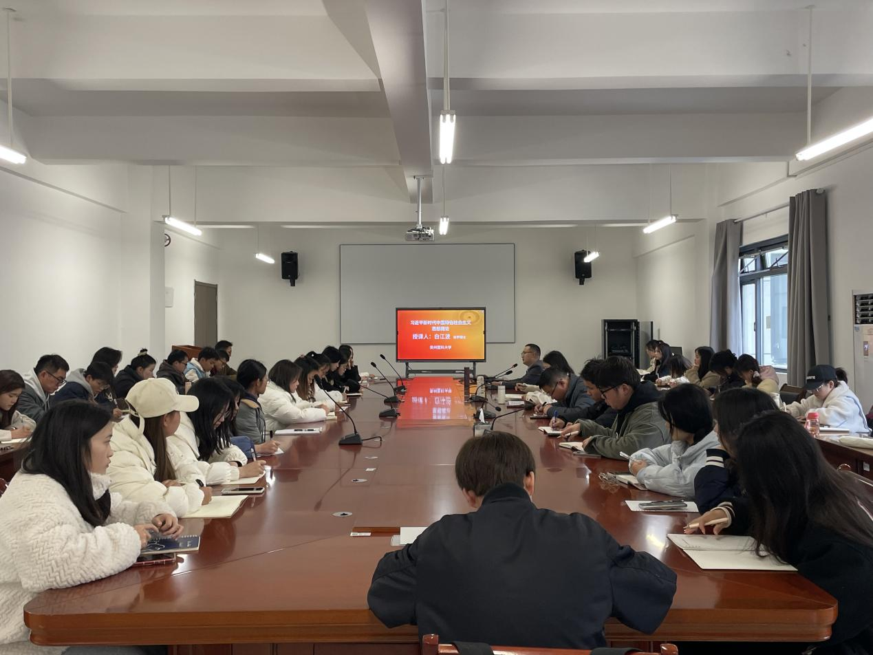 为深入学习领会习近平新时代中国特色社会主义思想,树牢支部党员理想信念,3月13日下午,学生党支部邀请我院白江波博士在云漫湖校区善思楼433会议室以“深入理解习近平新时代中国特色社会主义思想的时代背景”为主题为全体党员讲授了一堂生动的党课。支部书记杜美瑾、学院分团委书记马景瑶、支部成员黄连舟、余茂英及全体预备党员和入党积极分子参加,支部书记杜美瑾主持。