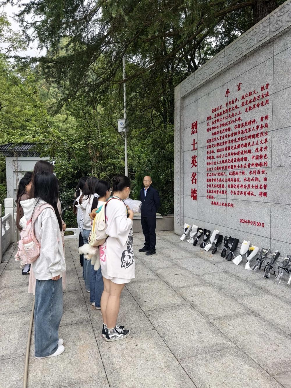 9月27日,马克思主义学院学生党支部赴黔灵山贵州革命先烈纪念碑开展以“缅怀先烈,勿忘历史”为主题的祭扫活动。上午10时30分,活动在庄严肃穆的氛围中正式开始。全体成员身着素装,整齐列队于烈士纪念碑前。