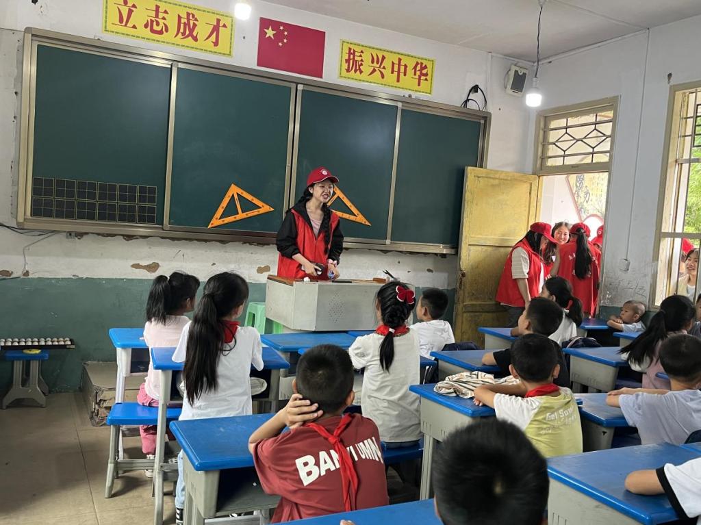 10日上午,在平寨村支部书记龙海应的带领下,师生们前往平寨小学开展实践活动。实践队成员与小朋友们相互自我介绍,激发了他们的热情。随后,实践队成员与小朋友们进行了有趣的击鼓传花游戏,让小朋友们积极发言,锻炼他们的表达能力。接着,实践队成员又与小朋友们一起做故事拼图,激发了小朋友们的想象力,也让大家对平寨小学的教育环境有了一定了解。