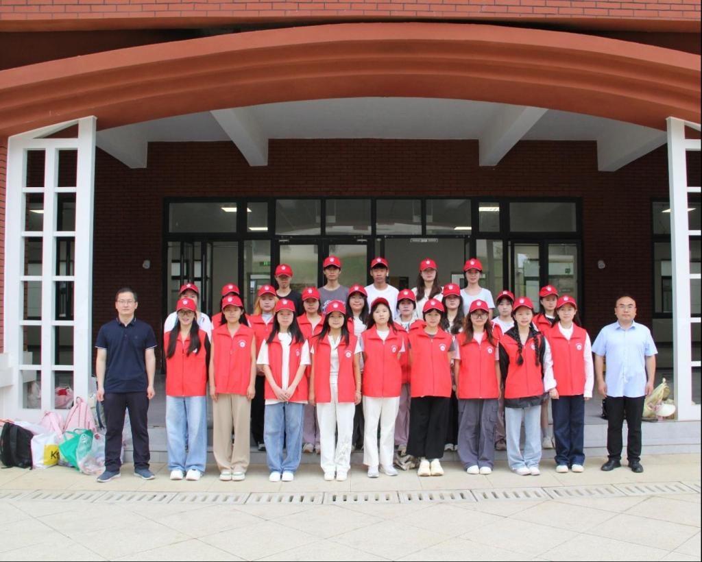 出发前,王万江、马景瑶与同学们在善思楼前合影留念,并强调了社会实践活动中的注意事项。