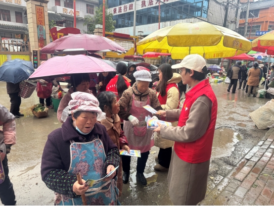 杨永恒现场发放传单、讲解各种安全知识