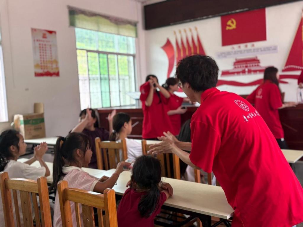 15日下午,部分实践队员来到巴台村村委会,通过组织趣味游戏、开展自我介绍、颁发活动奖品、分享暑期蛋糕等多种互动形式,进一步拉近了与当地留守儿童的距离,让孩子们在欢声笑语中收获知识和快乐,感受温暖与关怀。