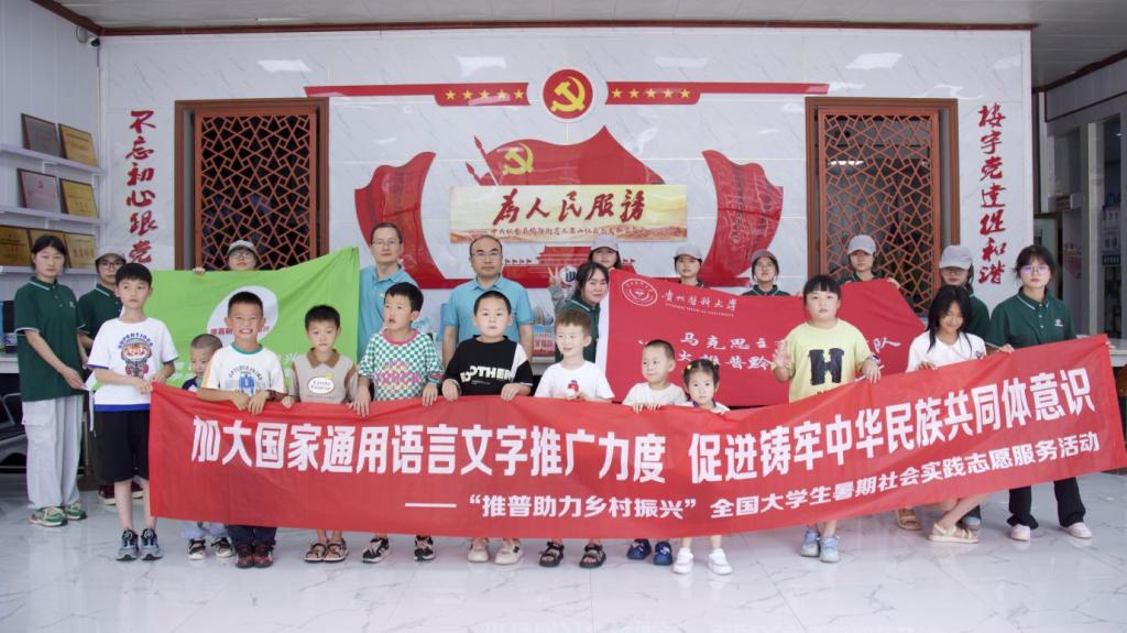 为响应国家“推普助力乡村振兴”号召,加大国家通用语言文字推广力度,促进铸牢中华民族共同体意识,引导青年学生为中国式现代化贡献青春力量,7月11日至7月16日,贵州医科大学马克思主义学院星火推普黔进实践队全体成员在学院党委副书记兼纪委书记王万江及分团委副书记、辅导员马景瑶的带领下赴毕节市织金县绮陌街道三架山社区开展“童声同语”推普活动。