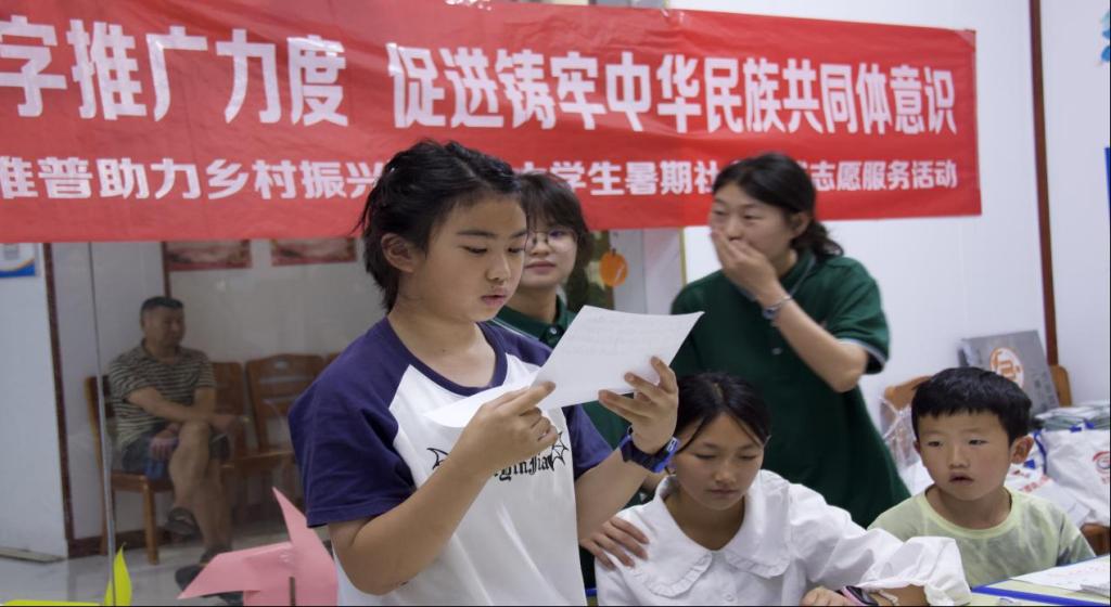 为深化国家通用语言文字的推广,增强青少年的安全意识与爱国情怀,7月14日,马克思主义学院星火推普黔进实践队走进毕节市织金县三架山社区,以“童声传安全,童心献祖国,在推普中护航儿童成长”为主题,举办了一场别开生面的推普活动,让学生在欢声笑语中汲取知识与成长的力量。