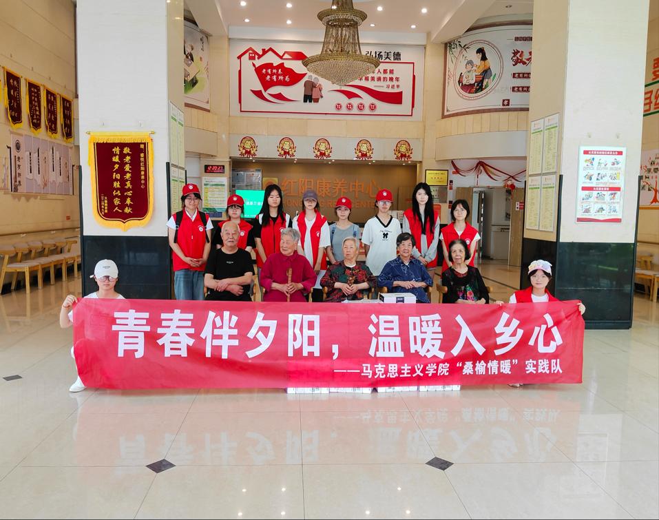 为积极响应学校暑期“三下乡”社会实践号召,关注乡村养老问题,马克思主义学院“桑榆情暖”实践团队于7月11日奔赴睿悦红阳康养中心,开展以陪伴老人、了解养老机构管理为主要内容的实践活动,为养老院送去温暖与关怀。