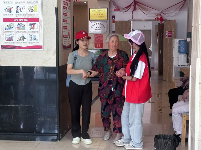 实践团队成员身着红马甲,走进老人的生活空间。在康养中心的大厅、休息区,成员们与老人亲切交谈,倾听他们讲述往昔岁月,陪老人回忆美好片段。有的成员搀扶老人漫步,耐心听老人唠家常;有的围坐在一起,听老人分享生活感悟,用青春的陪伴驱散老人的孤寂,让温暖在交流中传递。