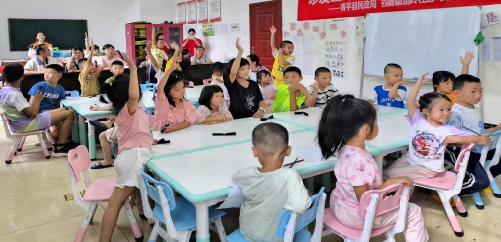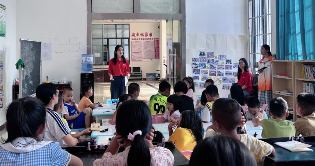 实践队员以榕江洪水,一方有难、八方支援的案例,用通俗易懂的方式向孩子们传达全国“各民族像石榴籽一样紧紧抱在一起”,引导孩子们铸牢中华民族共同体意识。
