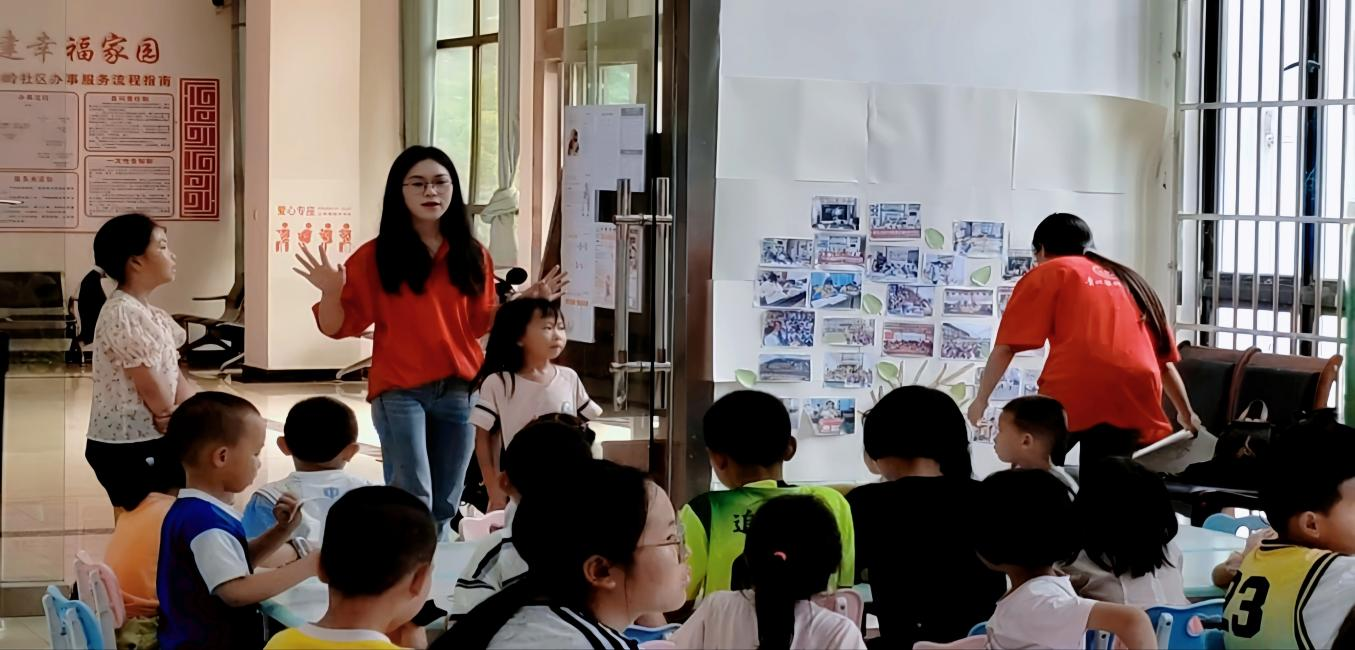 为了让孩子们更好地领略本地文化的魅力,实践队员声情并茂地讲述了“蝴蝶妈妈”的故事。在苗族神话中,“蝴蝶妈妈”是生命的源头,是美好与希望的象征。这个充满奇幻色彩的故事,如同一把钥匙,打开了孩子们了解民族文化的大门。孩子们沉浸其中,眼眸中跃动着好奇与自豪的火花,对民族文化的认知愈发深刻,认同感油然而生。