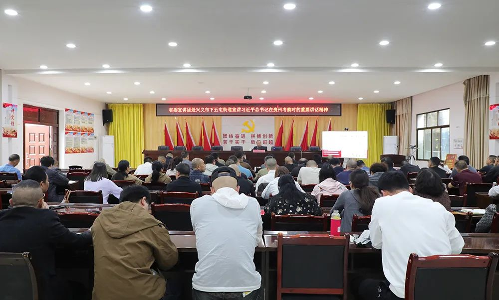 4月12日,深入学习贯彻习近平总书记在贵州考察时的重要讲话精神省委宣讲团报告会在兴义市下五屯街道、万峰林街道举行。省委宣讲团成员、贵州医科大学马克思主义学院党委副书记王万江作宣讲报告。