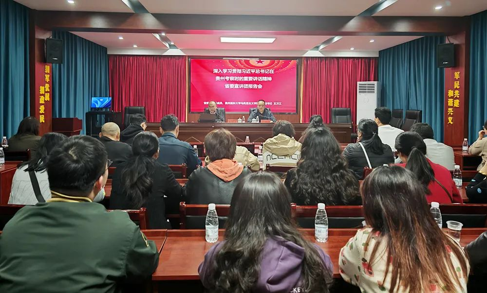 4月9日,深入学习贯彻习近平总书记在贵州考察时的重要讲话精神省委宣讲团报告会在兴义市黄草街道、兴泰街道举行,省委宣讲团成员、贵州医科大学马克思主义学院党委副书记王万江作宣讲报告。