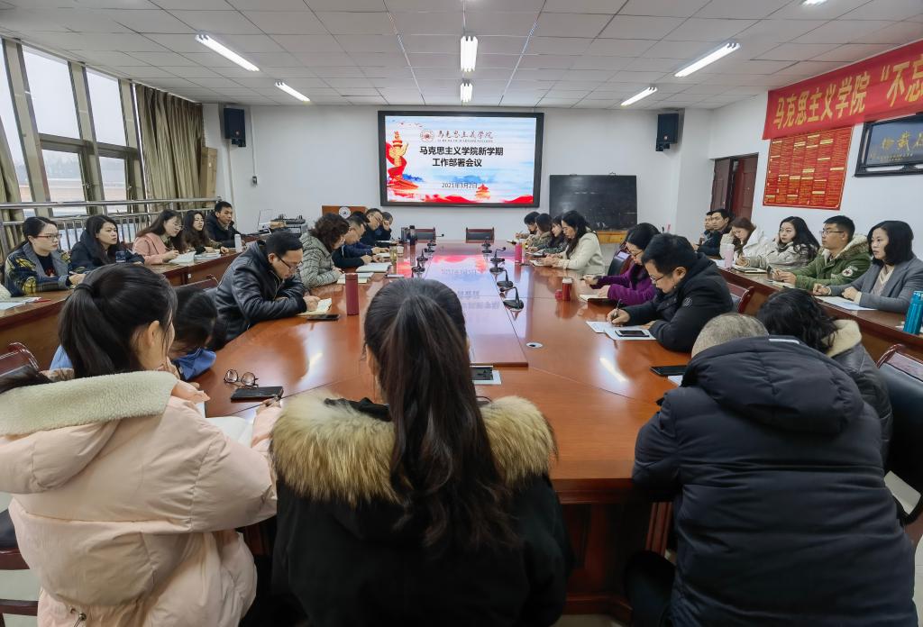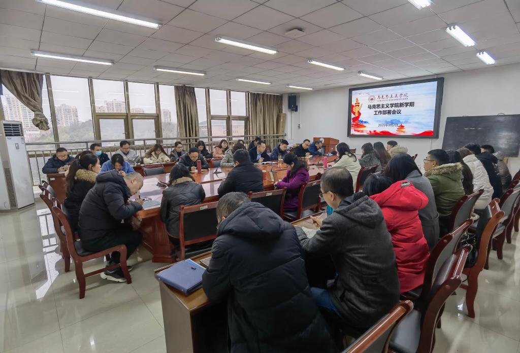 3月2日,马克思主义学院在善思楼7楼会议室召开新学期工作部署会。学院党委书记黄鑫权、院长杨成兰、正处级组织员陆法钢、党委副书记王万江及全体教职工参加。会议由杨成兰主持。