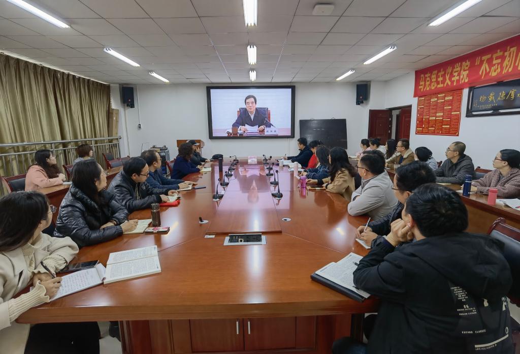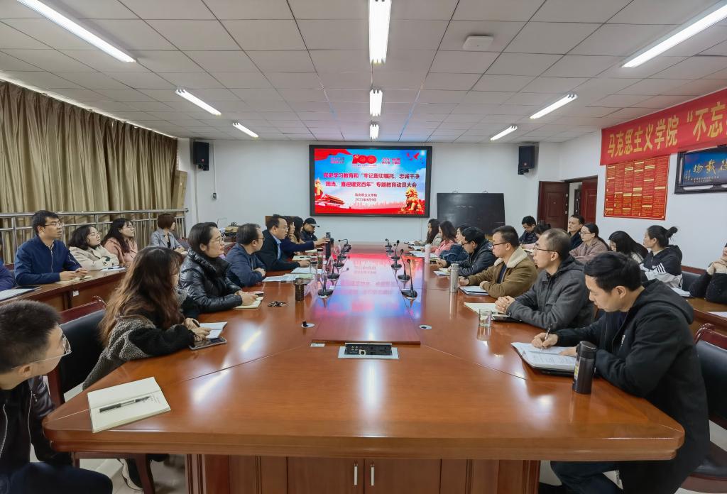 动员会上,王万江传达了学校《党史学习教育和“牢记殷切嘱托、忠诚干净担当、喜迎建党百年”专题教育工作方案》精神,并从开展党史学习教育专题学习、教职工党支部在“三会一课”、主题党日中加强党史学习教育、组织好双周政治理论学习、开展党史理论研究阐释、开展“我为群众办实事”实践活动、开展党史学习教育专题辅导宣讲活动、开设“四史”教育通识课程、结合党史学习教育,更新学院文化墙和学院主页等方面部署了马克思主义学院党史学习教育工作。