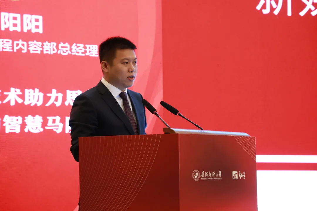 超星集团课程内容部总经理李阳阳基于信息技术与思政育人融合,作“新媒体新技术助力思政课守正创新和智慧马院建设”的主题报告。他从政策、理论和时代背景出发,介绍了超星近年来为推动思政课改革创新所做的系列工作,强调在思政课教学和马院的信息化建设中资源、内容、教学模式个性化的重要性。他着重讲述了超星智慧马院基于海量思政资源、微服务技术、人工智能技术、大数据技术,立体化打造备课资源库、教学辅助系统、无纸化考试系统、实践教学系统、教师研修管理系统五大模块,满足教学互动、考试评价、实践教学、教师发展、集体备课、形势与政策教学及各高校马院个性化应用场景需求,构建1+5+N的整体解决方案。