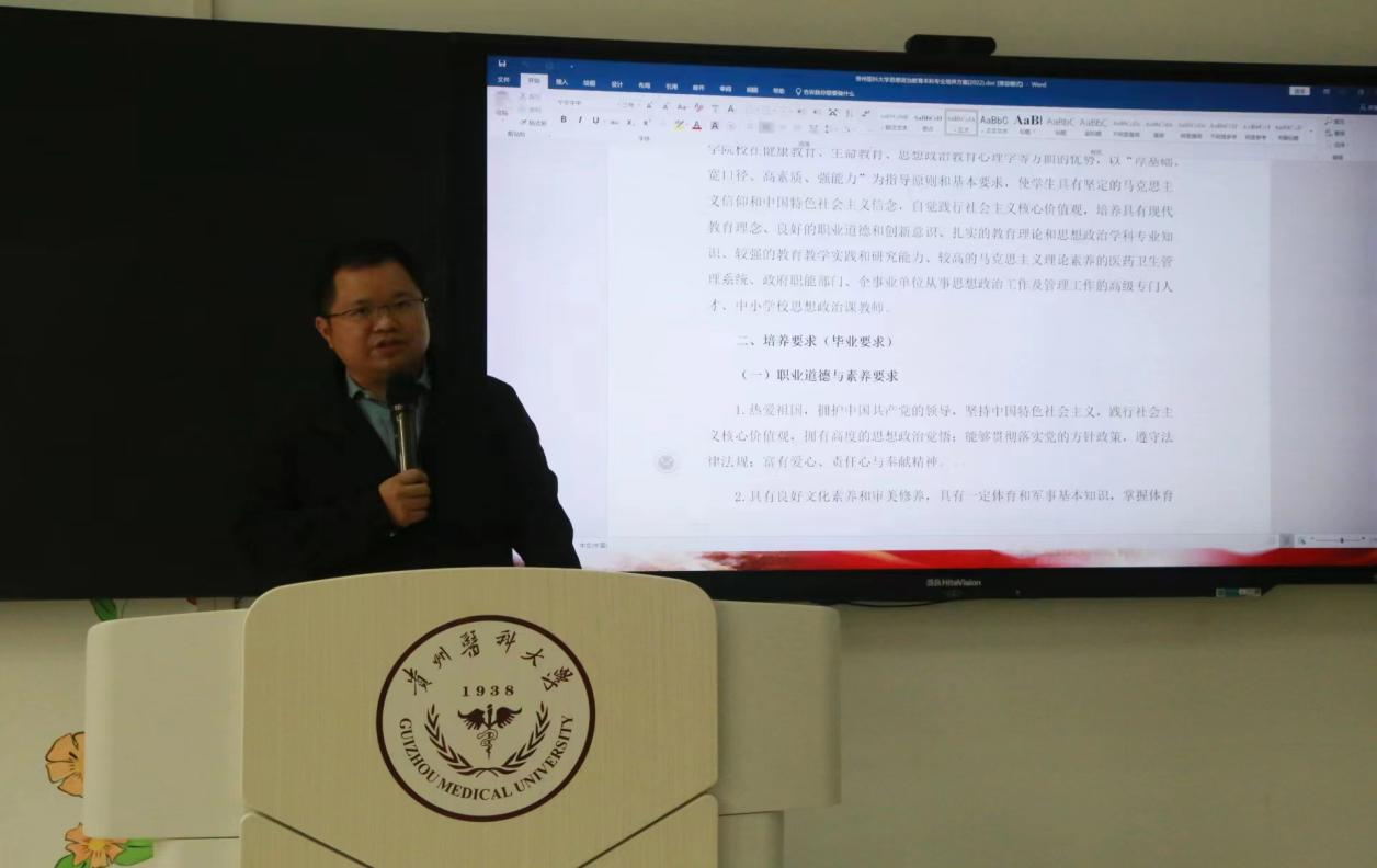 副院长禹辉映介绍专业基本情况,他表示,马克思主义学院是一个有情怀的学院,思想政治教育专业是一个有前途、有理想的专业,希望同学们与学院互不辜负。