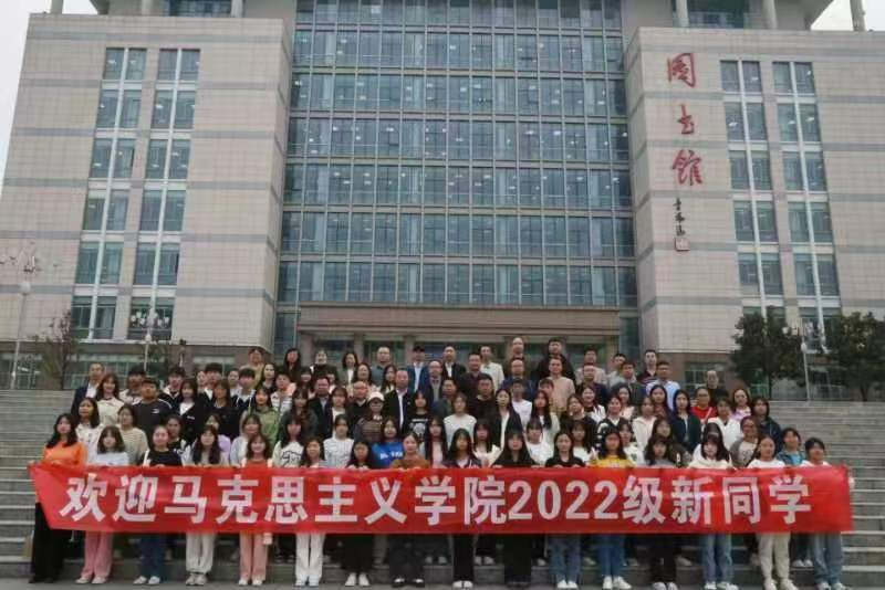会后,马克思主义学院全体教师以及2022级全体同学在图书馆门前合影留念。