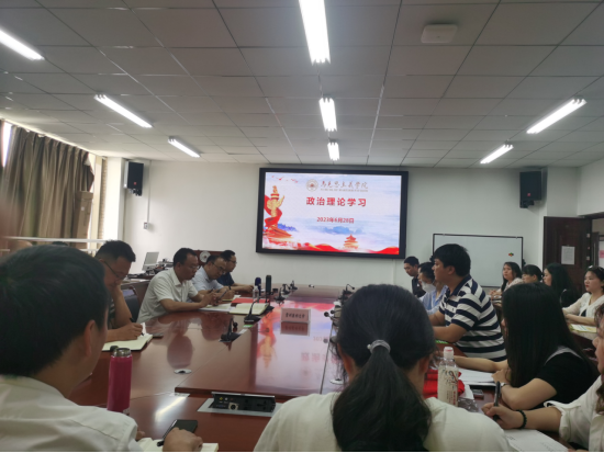为深入开展学习贯彻习近平新时代中国特色社会主义思想主题教育,教育引导广大教职工进一步增强“四个意识”、坚定“四个自信”,衷心拥护“两个确立”,忠诚践行“两个维护”。6月28日,马克思主义学院在善思楼(南)7楼会议室开展全体教职工政治理论学习。会议由党委书记黄鑫权主持,学院全体教职工参加。