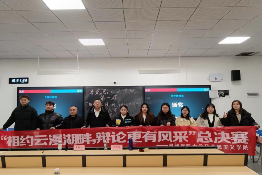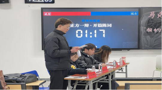 为加强学风建设,丰富同学课余生活,营造浓厚的学习氛围,展现新时代大学生的良好精神风貌,11月29日至12月21日,马克思主义学院第一届辩论赛在善思楼R107教室举办。辩论赛由学院学生会文体部雷德琴、何雪主持,学院各年级学生代表参加。决赛环节,学院党委书记黄鑫权、副书记王万江亲临现场指导点评。