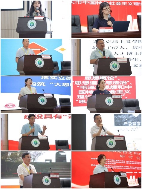 在医马院长论坛环节,西南医科大学马克思主义学院院长黄晓利以《落实立德树人根本任务 构筑“大思政课”育人新格局》为题,成都医学院马克思主义学院副院长黄晓强以《铸魂 立德 强能—成医马院打造特色思政课育人模式》,成都中医药大学副院长雷虹艳以《仁和精诚 道术并重—思政课程与课程思政同向同行的实践与思考》为题,达州中医药职业学院马克思主义学院书记、院长邓磊以《传承红色基因,站稳思政讲台》为题,昆明医科大学马克思主义学院书记、院长徐庆生以《建设具有“云南味”“医学味”的思政课》为题,贵州医科大学马克思主义学院副院长禹辉映以《“五个坚持”推动马克思主义学院高质量发展》为题,重庆市中国特色社会主义理论体系研究中心秘书处处长李钰以《坚持问题导向 切实推动习近平新时代中国特色社会主义思想“三进”》为题,重庆中医药学院马克思主义学院院长代浩云以《中医药文化赋能“大思政课”建设的内在逻辑与实践路径索思》为题,重庆医药高等专科学校马克思主义学院院长董杨以《“大课堂大平台大师资”协同联动,推动“三全育人”改革创新》为题,做了报告分享。医马院长论坛环节由重庆医科大学马克思主义学院院长代安琼主持。