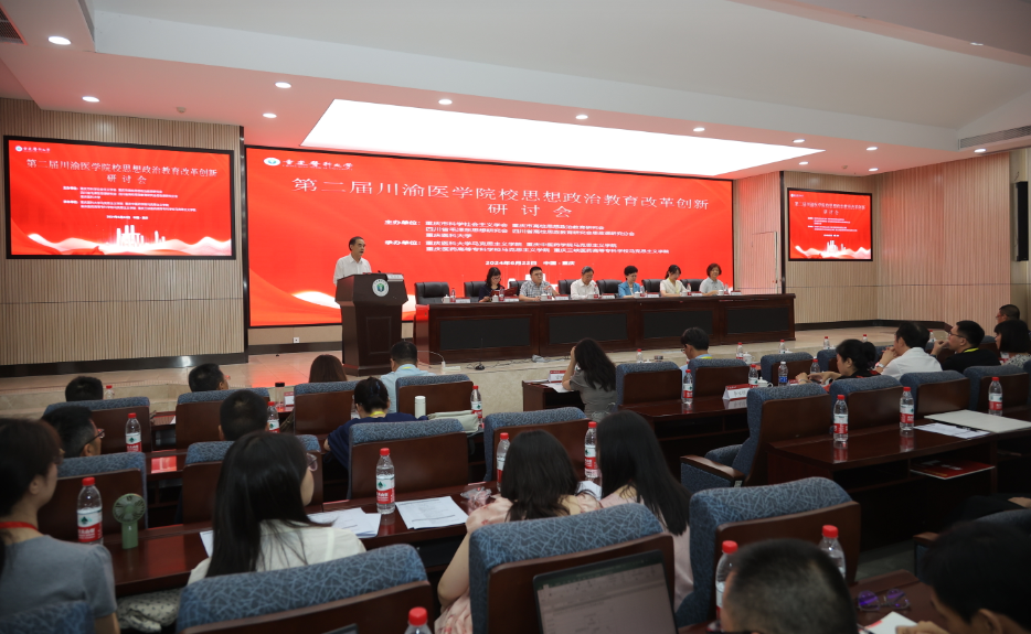 为深入学习宣传贯彻落实习近平总书记对学校思政课建设的重要指示精神,习近平总书记视察四川、重庆重要讲话重要指示精神,深化对思政课建设规律的认识,强化思政教育在新时代推动西部大开发进程中发挥的重要作用,不断开创川渝两地医学院校思政教育新局面,6月22日,由重庆医科大学马克思主义学院承办的“医学院校深入推进‘大思政课’建设研讨会暨第二届川渝医学院校思想政治教育改革创新研讨会”在重庆医科大学隆重举行。来自重庆医科大学、成都中医药大学、西南医科大学、成都医学院等20余所医学院校专家学者齐聚一堂,为推动医学院校思想政治教育改革创新“把诊问脉”。我院副院长禹辉映应邀参会,并作主旨报告。
