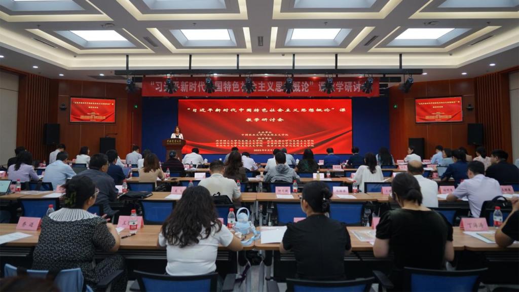 为深入学习贯彻习近平总书记给中国农业大学科技小院学生重要回信精神,深入研究习近平新时代中国特色社会主义思想,贯彻落实党的二十大精神,推动习近平新时代中国特色社会主义思想进教材、进课堂、进头脑,加快“习近平新时代中国特色社会主义思想概论”课的教学研究和教学改革,提升“习近平新时代中国特色社会主义思想概论”课的教学实效,真正落实立德树人根本任务。9月9日上午,由中国农业大学马克思主义学院主办,北京理工大学、北京交通大学、北京邮电大学、中央财经大学、华北电力大学、北京工业大学等六家马克思主义学院协办的“习近平新时代中国特色社会主义思想概论”教学研讨会在中国农业大学东区图书馆举行。中国农业大学副校长林万龙、北京市委教育工委宣教处副处长丁贞栋出席会议并致辞。中国农业大学马克思主义学院党总支书记卢兆彤主持研讨会开幕式。我院张顺林老师应邀参加此次研讨会。