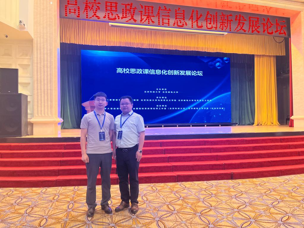 为深入学习贯彻习近平新时代中国特色社会主义思想和党的二十大精神,服务教育强国战略部署,积极践行教育数字化战略,推进高校思政课改革创新,6月10日至11日,北京科技大学、北京邮电大学在西郊宾馆联合主办高校思政课信息化创新发展论坛。教育部社科司副司长宋凌云、北京市委教育工委副书记王达品、北京科技大学党委副书记于成文、北京邮电大学党委副书记曲昭伟出席论坛开幕式。来自180余所高校,共计300余名思政课专家、学者和教师参加了论坛,我院禹辉映、王东两位老师应邀参加此次论坛。