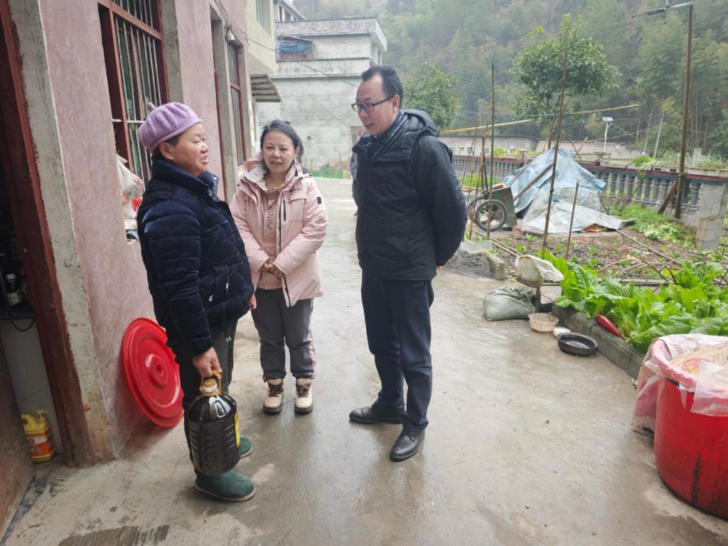 调研期间,黄鑫权一行走访慰问了村内监测户和脱贫户,详细了解其生产生活和身体状况,向他们转达学院的关怀与问候,并叮嘱大家注意身体健康。