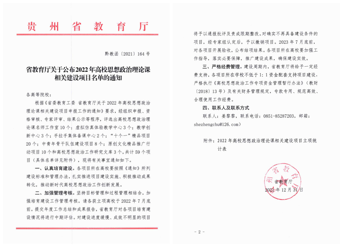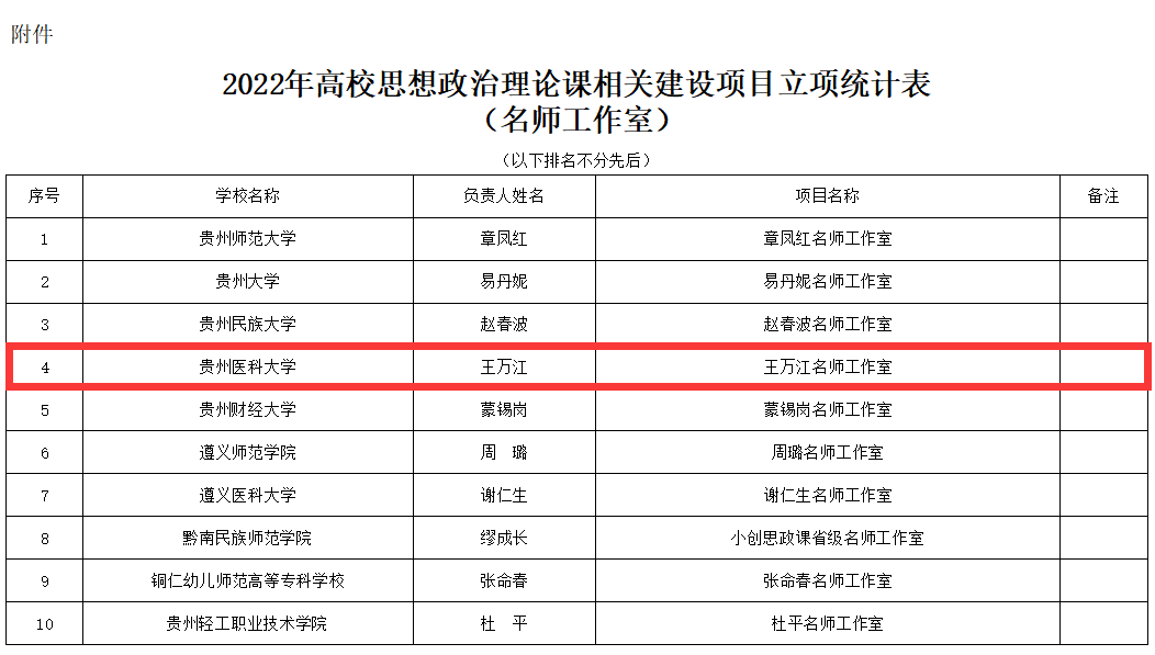 近日,省教育厅公布《2022年高校思想政治理论课相关建设项目名单》,我院教师王万江领衔申报的名师工作室获批“贵州省高校思政课名师工作室”。