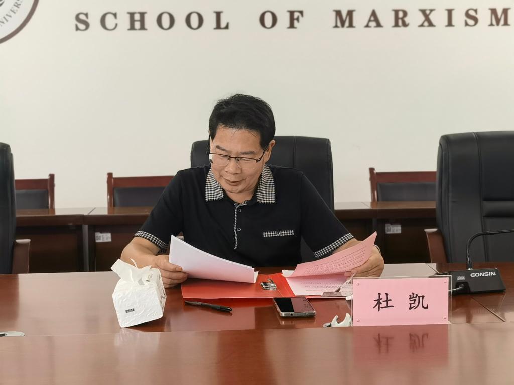 杜凯作“认真领会落实教育强国精神”的中心发言,他结合教育强国的总体要求,指出马克思主义学院要坚持不懈用习近平新时代中国特色社会主义思想铸魂育人,要树立科学的人才观、成才观、教育观,要加强教材建设和管理,要积极对外开放办学,要加强师德师风建设。