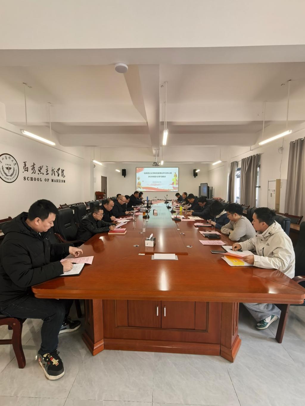 2月27日,我院党委理论学习中心组召开2026年第一次学习研讨会。学院党委班子成员、党委委员、教师党支部书记、学生党支部书记及各教研(科)室负责人参加学习,会议由学院党委书记杜凯主持。